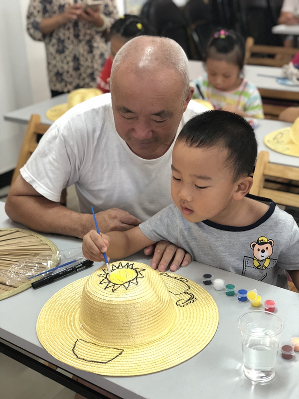 在这骄阳似火的炎炎夏日,你有什么防暑小妙招吗?草帽、风扇和防晒霜成为了出门三宝。觉得草帽色彩单一?不够酷炫?那就自己动手来改造吧!就算再大的太阳也抵挡不了我们创作的激情……带上你的创意,和我们一起来动手画草帽吧! 7月24日,在睦邻坊社会组织策划下,杨行镇杨泰二村二居小朋友参加了居委会举办的“防暑我最行”暑期主题活动,让小朋友们在快乐学习中发挥想象力,用手中的彩笔描绘美好的生活和绚烂的世界。小朋友们一个个有创意的草帽画涂鸦,既锻炼了动手能力,又亲身实践了绿色环保的暑期主题活动。 首先小朋友们在老师指导下,在草帽上用马克笔勾出自己想要的图案轮廓,然后涂上自己喜欢的颜色,再加以修饰和装点, 一款属于自己的创意草帽就完成。戴上自己亲手画的草帽,小朋友们勇敢地走上台,丰趣地做着自我介绍,展示着自己的草帽,摆出一个个帅气、漂亮的POSE。家长看着孩子们一个个大胆、自信地展示自己,不由得赞赏地鼓起掌来。孩子们可真棒啊!草帽秀出了创意、秀出了风采!