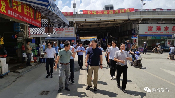 7月21日上午,宝山区委常委、副区长袁罡来到江杨市场进行实地调研。杨行镇副镇长刘惠斌、李华峰全程陪同调研。 袁罡同志实地察看了市场内的固定摊位和场地等基础设施,听取了市场负责人关于市场经营管理的情况介绍。 袁罡要求,江杨市场要合理规划布局,实施标准化建设和改造提升,强化市场管理,努力构建设施完善、配套齐全、管理高效、文明规范的标准化市场体系。