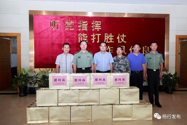 在中国人民解放军建军91周年来临之际,杨行镇党政领导班子兵分4路,分别走访慰问了驻地9家部队和共建部队官兵,并为子弟兵们送上了慰问品。 镇领导向全体官兵致以节日的问候,并表示杨行镇将始终秉承拥军优属的光荣传统,真心实意为部队做好事、办实事,尽全力为驻地部队提供服务保障。镇领导也借此机会向全体指战员在杨行镇经济文化建设和社会稳定中作出的贡献表示由衷感谢。 八一来临之际,杨行镇双拥办组织各村、居的优抚联络员们为重点优抚对象挨家挨户地送上慰问品,传达政府对他们的关爱。